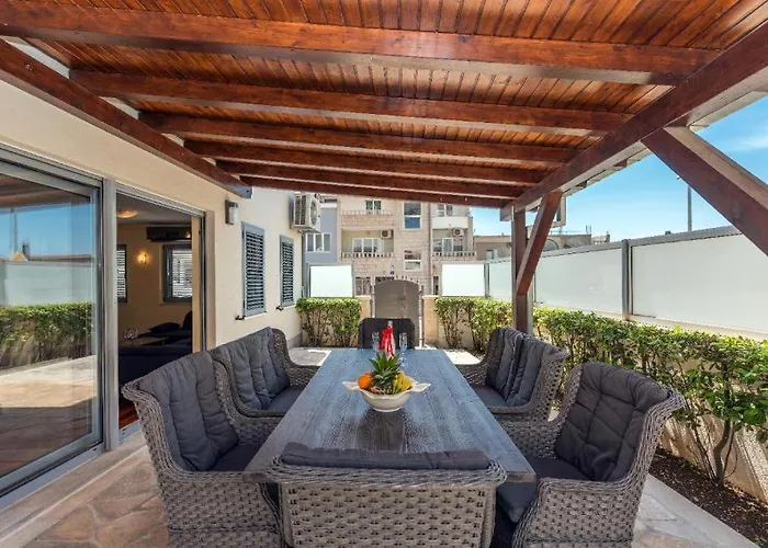 LUXURY APARTMENT MARIJA, Makarska med 2 sovrum, som har en terrass, ligger cirka 10 minuters bilresa från Biokovos naturreservat. Wi Fi och en parkering finns också i den här strandnära 90 m² stora lägenheten.